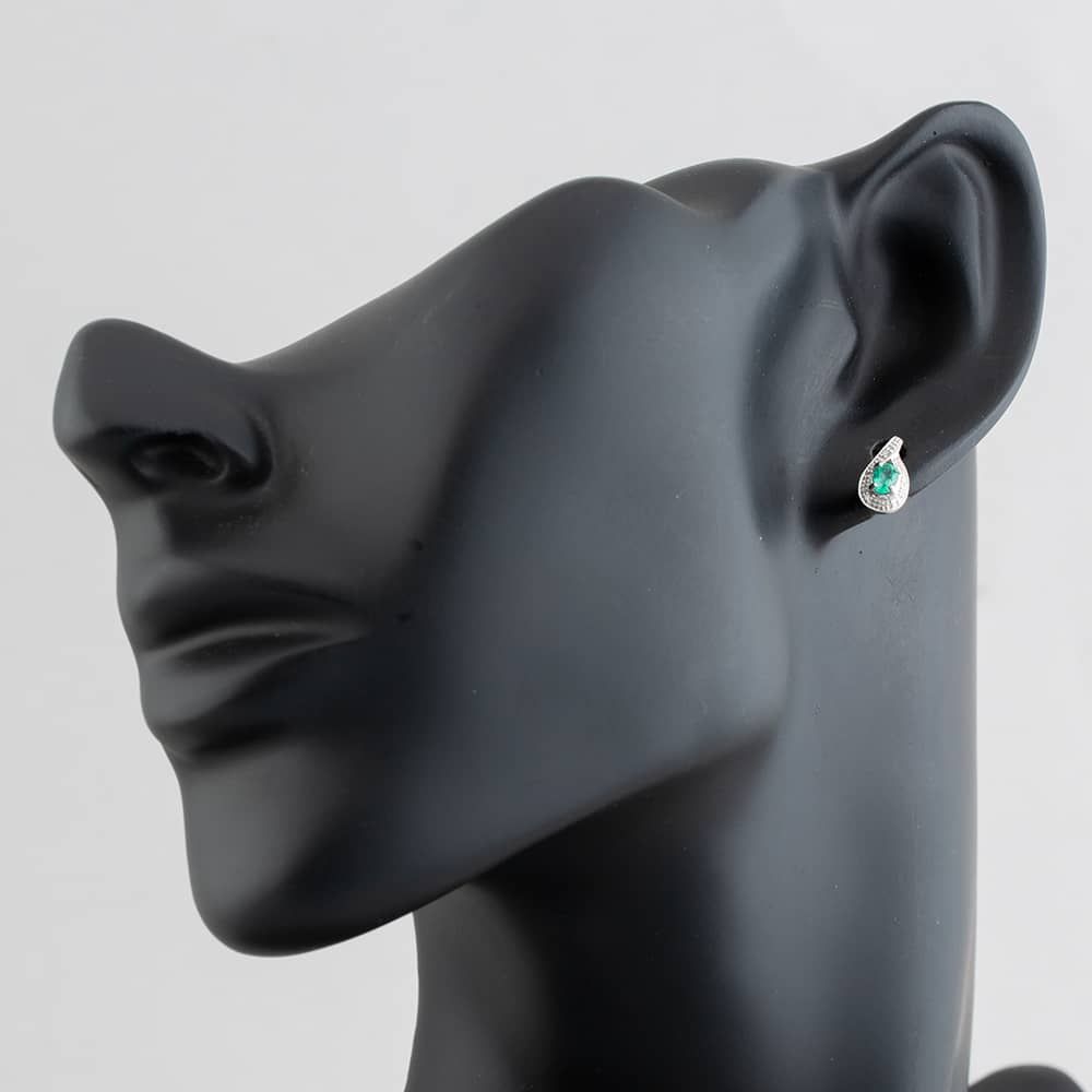 White Gold 0.30ct Oval Cut Emerald & 0.03ct Diamond Swirl Stud Earrings