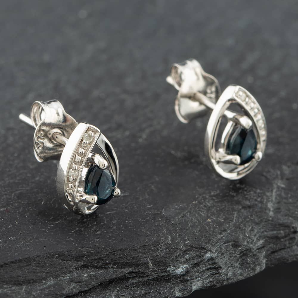 White Gold 0.35ct Sapphire & Diamond Pear Shaped Stud Earrings