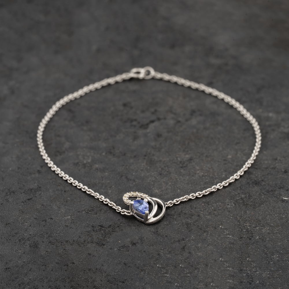 White Gold 0.35ct Tanzanite & 0.07ct Diamond Pear Shaped Ribbon Curl 7 Inch Belcher Bracelet