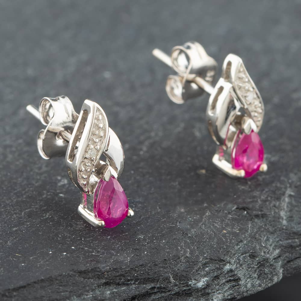 White Gold 0.42ct Pear Shaped Ruby & Diamond Stud Earrings