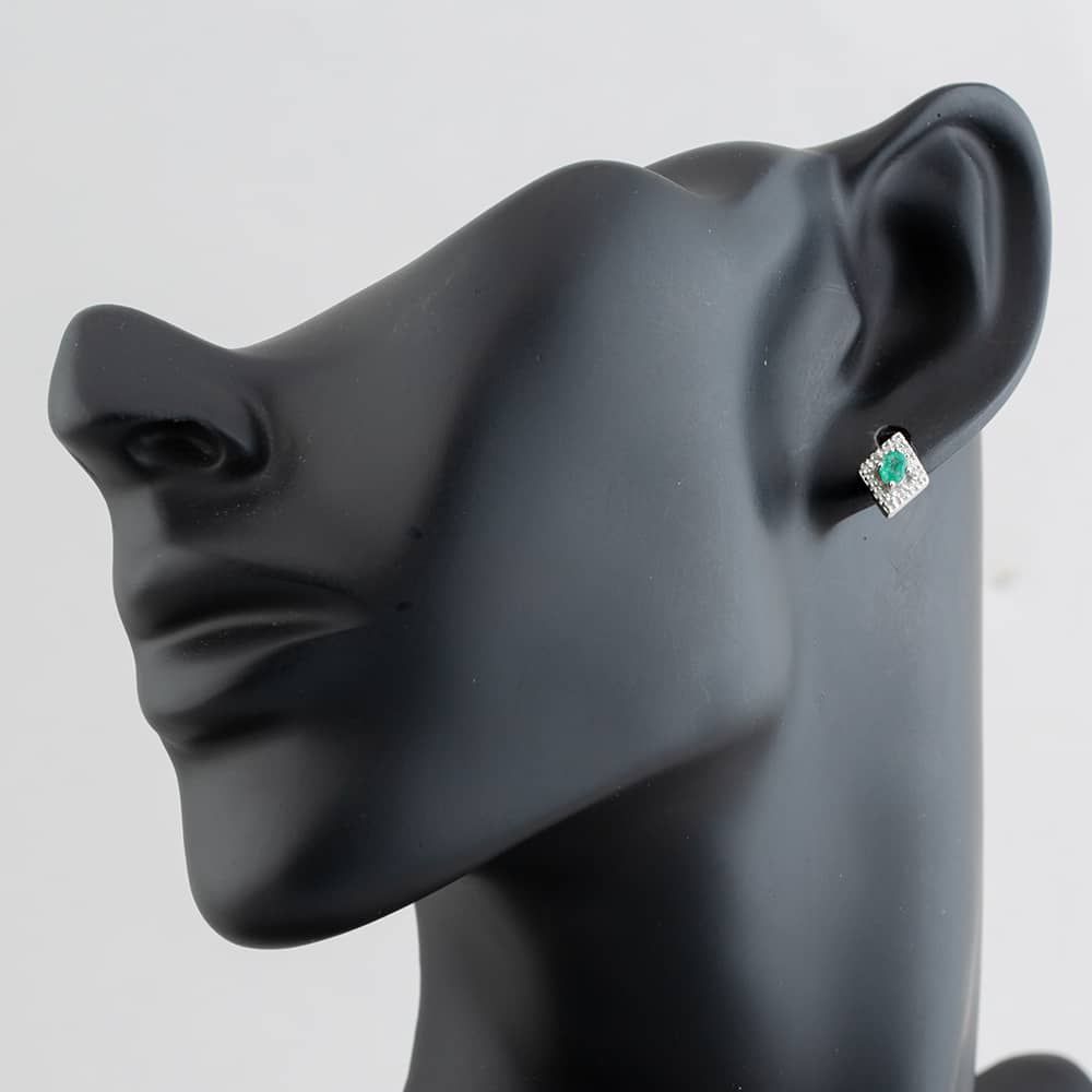 White Gold 0.50ct Emerald & 0.08ct Diamond Marquise Shaped Stud Earrings