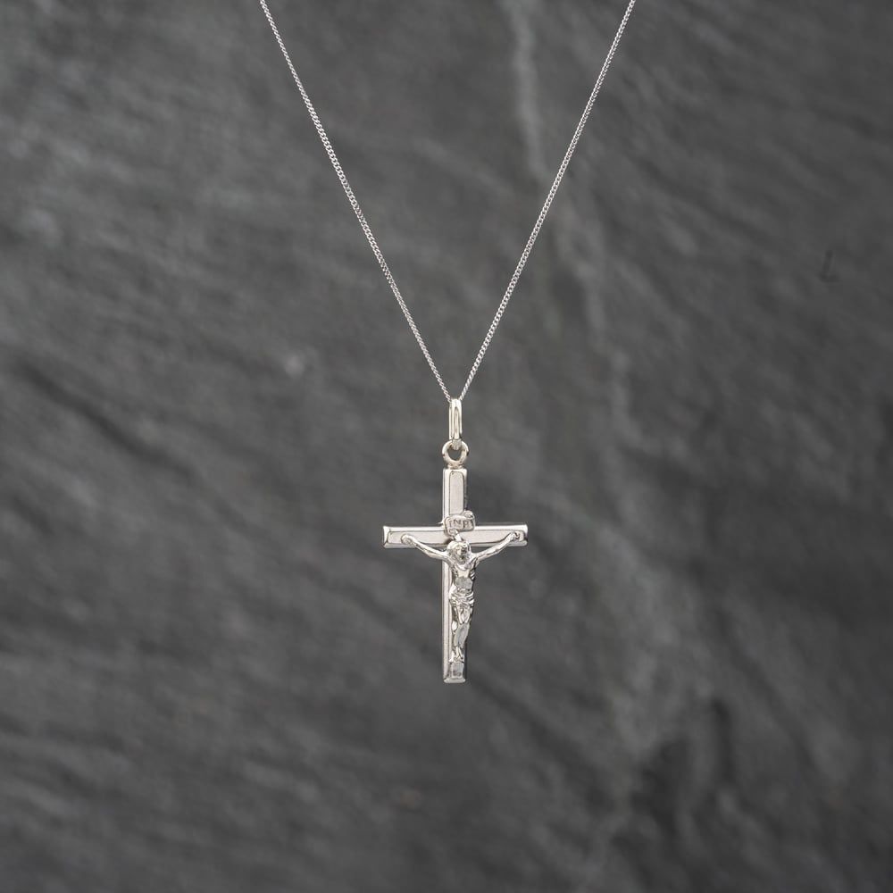 Second Hand White Gold Crucifix Cross Pendant & 18 Inch Curb Chain 41142842