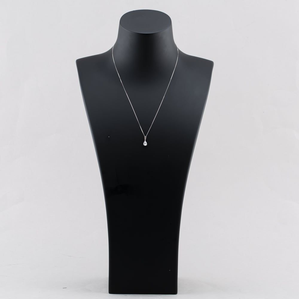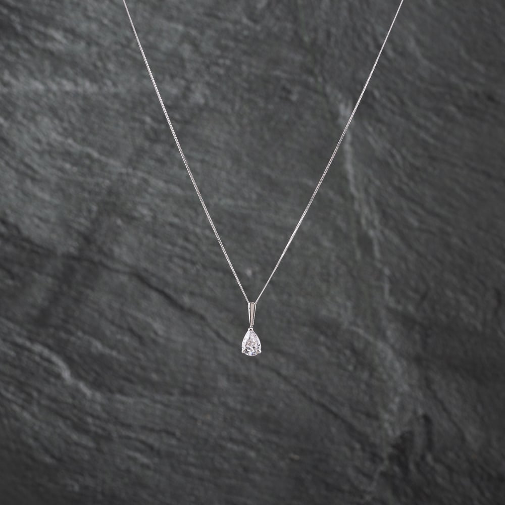 White Gold Cubic Zirconia Teardrop Pendant & 18 Inch Curb Chain