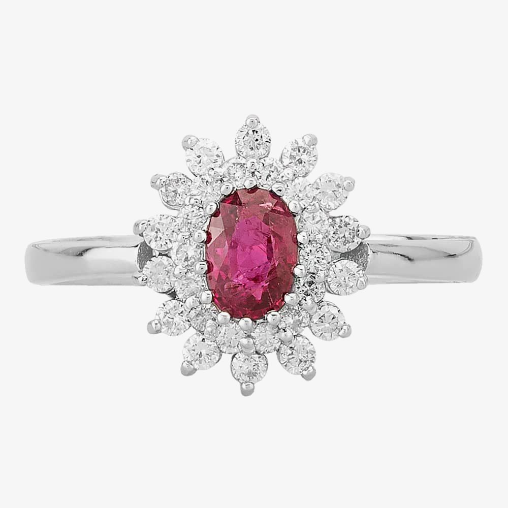 Second Hand 14ct White Gold 0.60ct Ruby & 0.30ct Diamond Cluster Ring 4335048