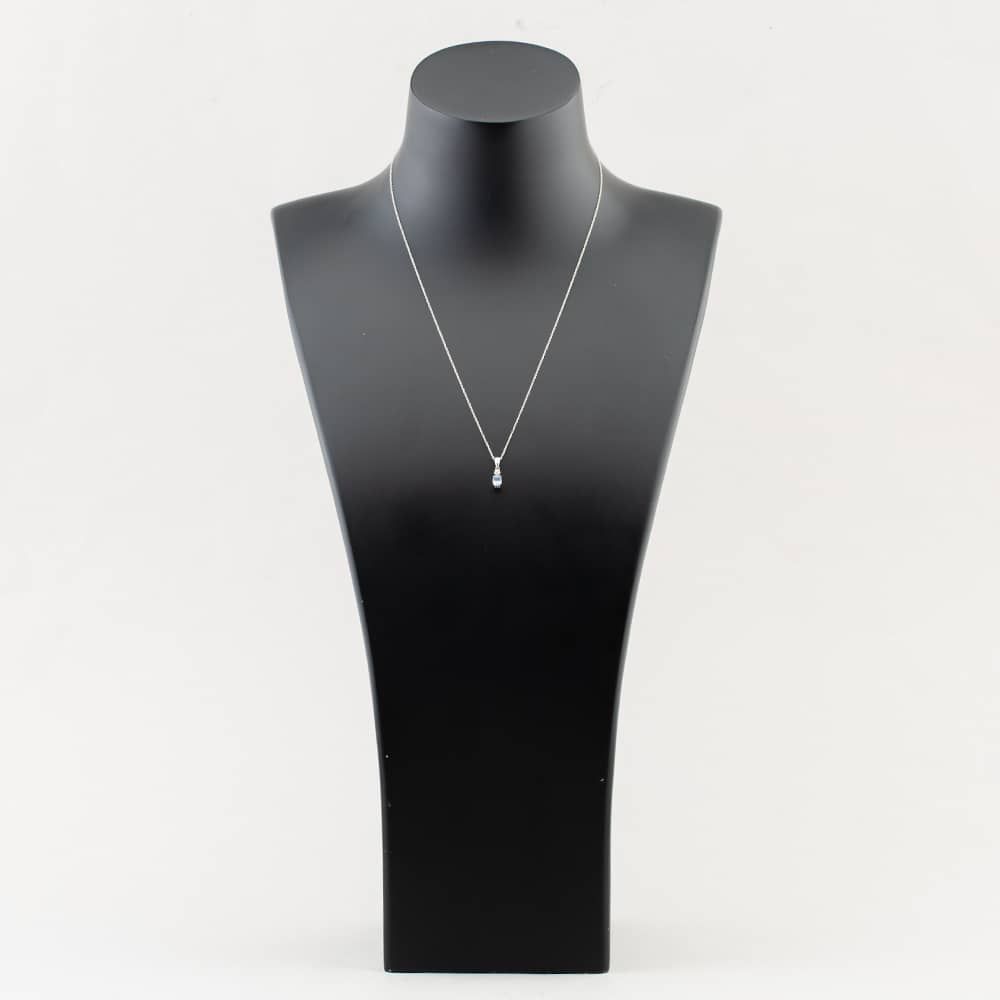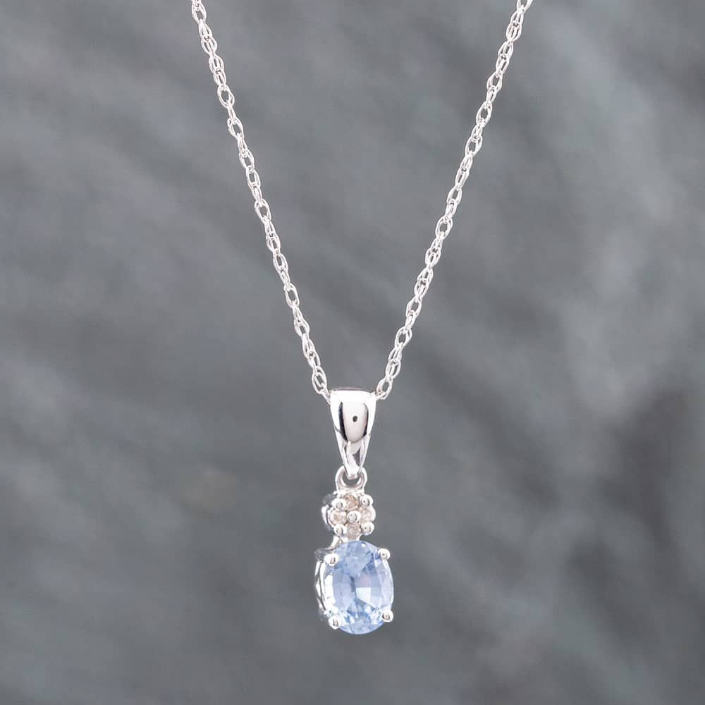 White Gold Oval Cut Ceylon Sapphire & Single Cut Diamond Pendant & 18 Inch Prince Of Wales Chain