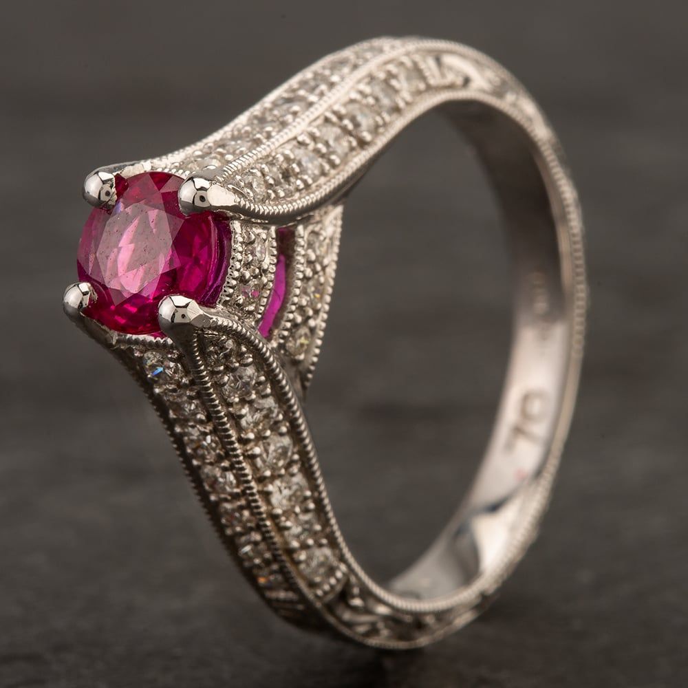 Second Hand 18ct White Gold 0.76ct Ruby & 0.50ct Diamond Ring 4232010