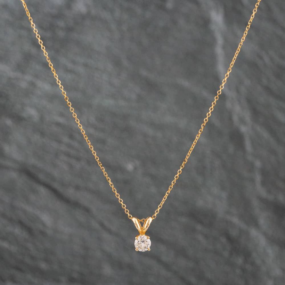 Yellow Gold 0.30ct Brilliant Cut Diamond Pendant & 18 Inch Trace Chain