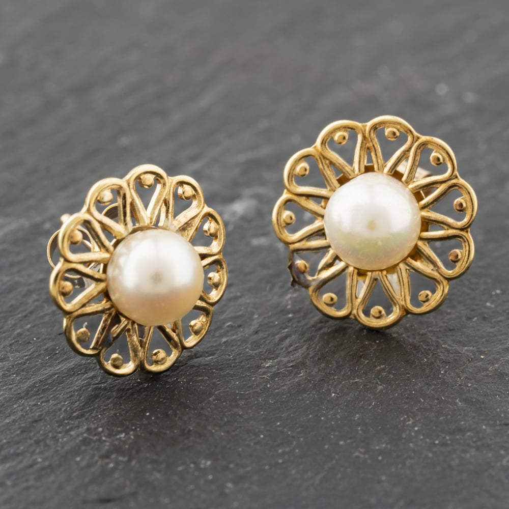 Second Hand Yellow Gold 11mm Cultured Pearl Openwork Stud Earrings 41174005 Second Hand Yellow Gold 11mm Cultured Pearl Openwork Stud Earrings 41174005