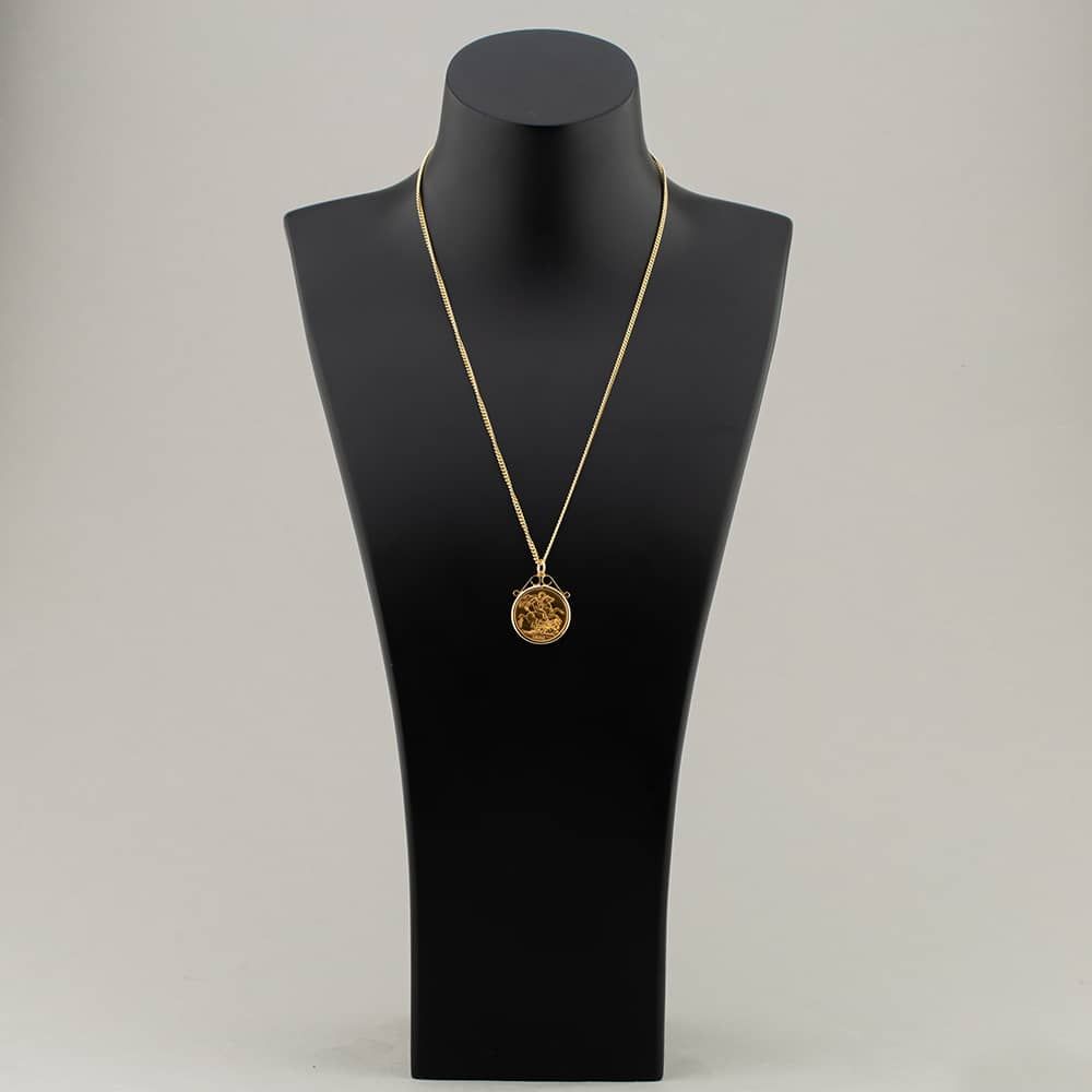 Yellow Gold 1898 Victoria Full Sovereign Coin Keeper Pendant & 20 Inch Curb Chain