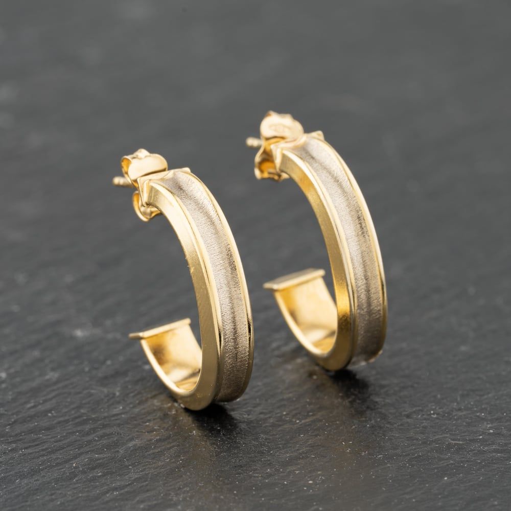 Yellow Gold 18mm Patterned Half Hoop Earrings
