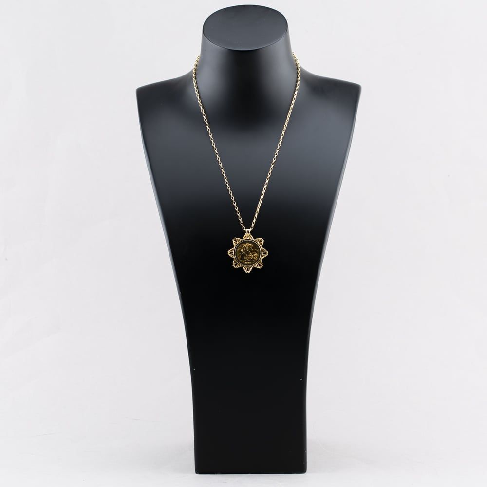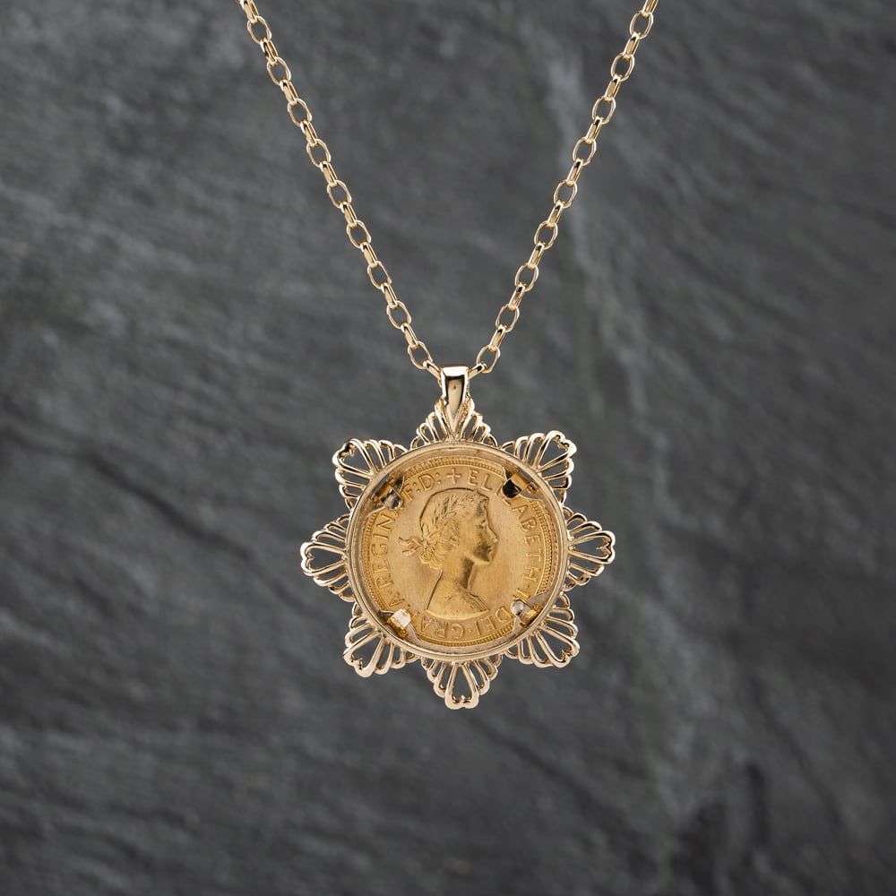 Yellow Gold 1968 Queen Elizabeth II Full Sovereign Star Design Mount Pendant & 19 Inch Belcher Chain