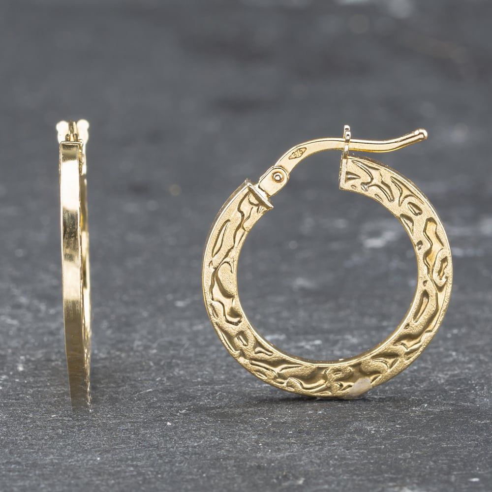 Second Hand Yellow Gold 21mm Patterned Hoop Earrings 41173543
