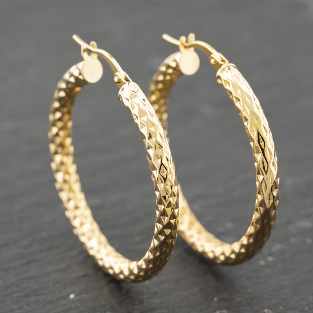 Second Hand Yellow Gold 31mm Patterned Hoop Earrings 41173981