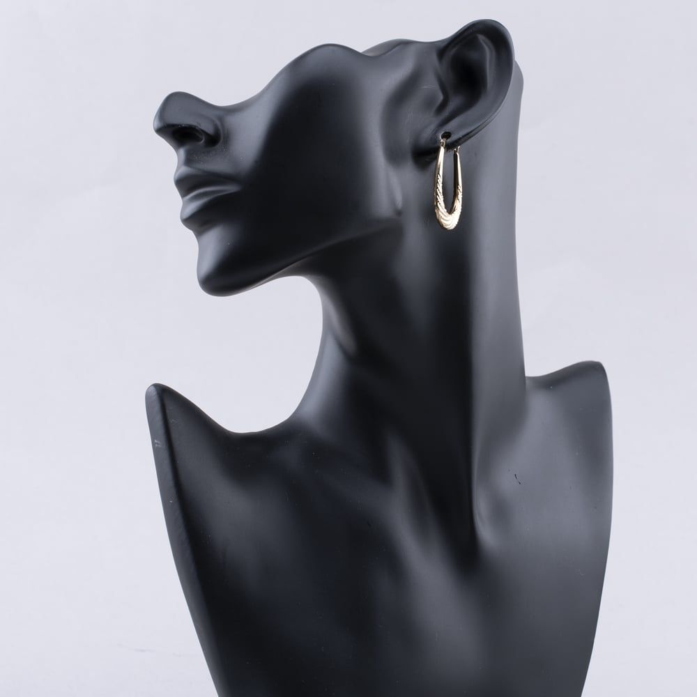 Yellow Gold 32mm Large Rope Pattern Oval Creole Earrings