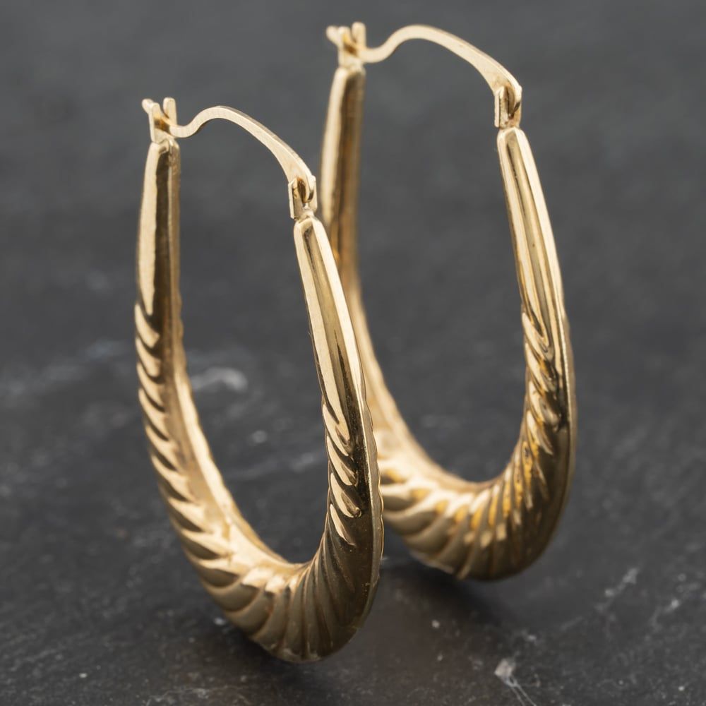 Second Hand Yellow Gold 32mm Oval Patterned Creole Earrings 41173456 Second Hand Yellow Gold 32mm Oval Patterned Creole Earrings 41173456