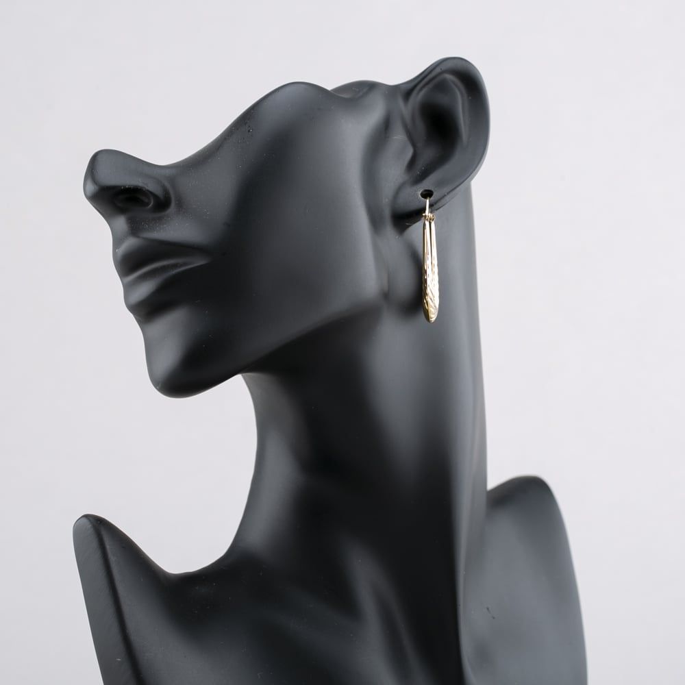 Yellow Gold 36.5mm Oval Lined Pattern Creole Earrings