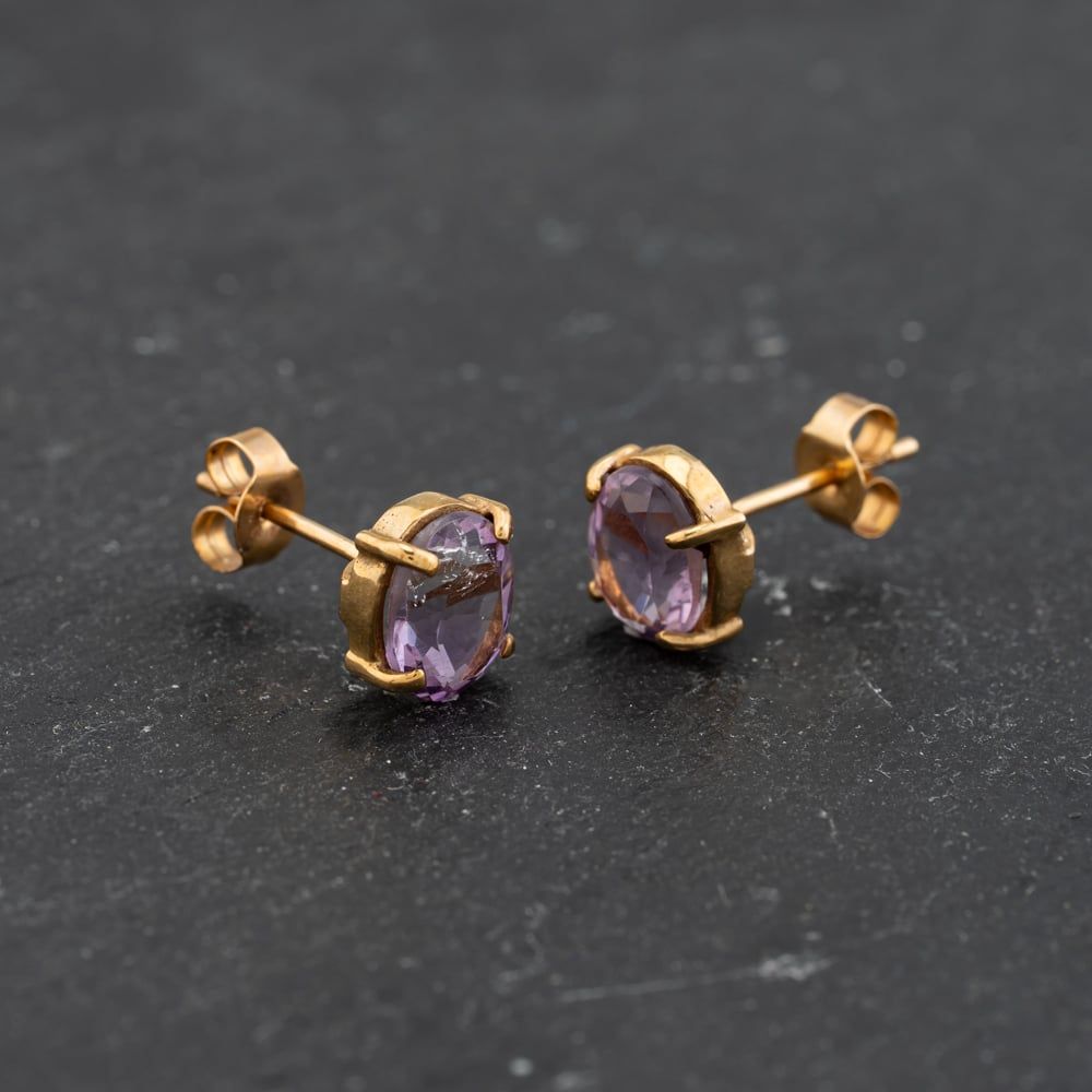 Second Hand Yellow Gold 8mm Amethyst Oval Stud Earrings 43171379 Second Hand Yellow Gold 8mm Amethyst Oval Stud Earrings 43171379