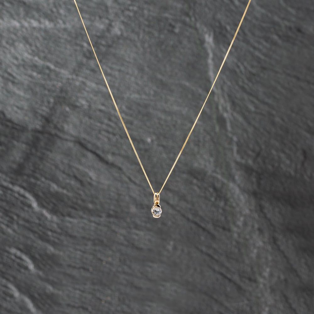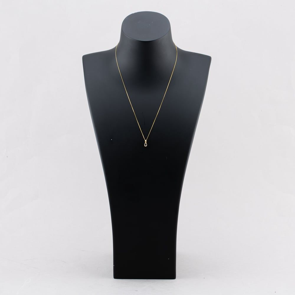 Yellow Gold Aquamarine Solitaire Pendant & 18 Inch Curb Chain