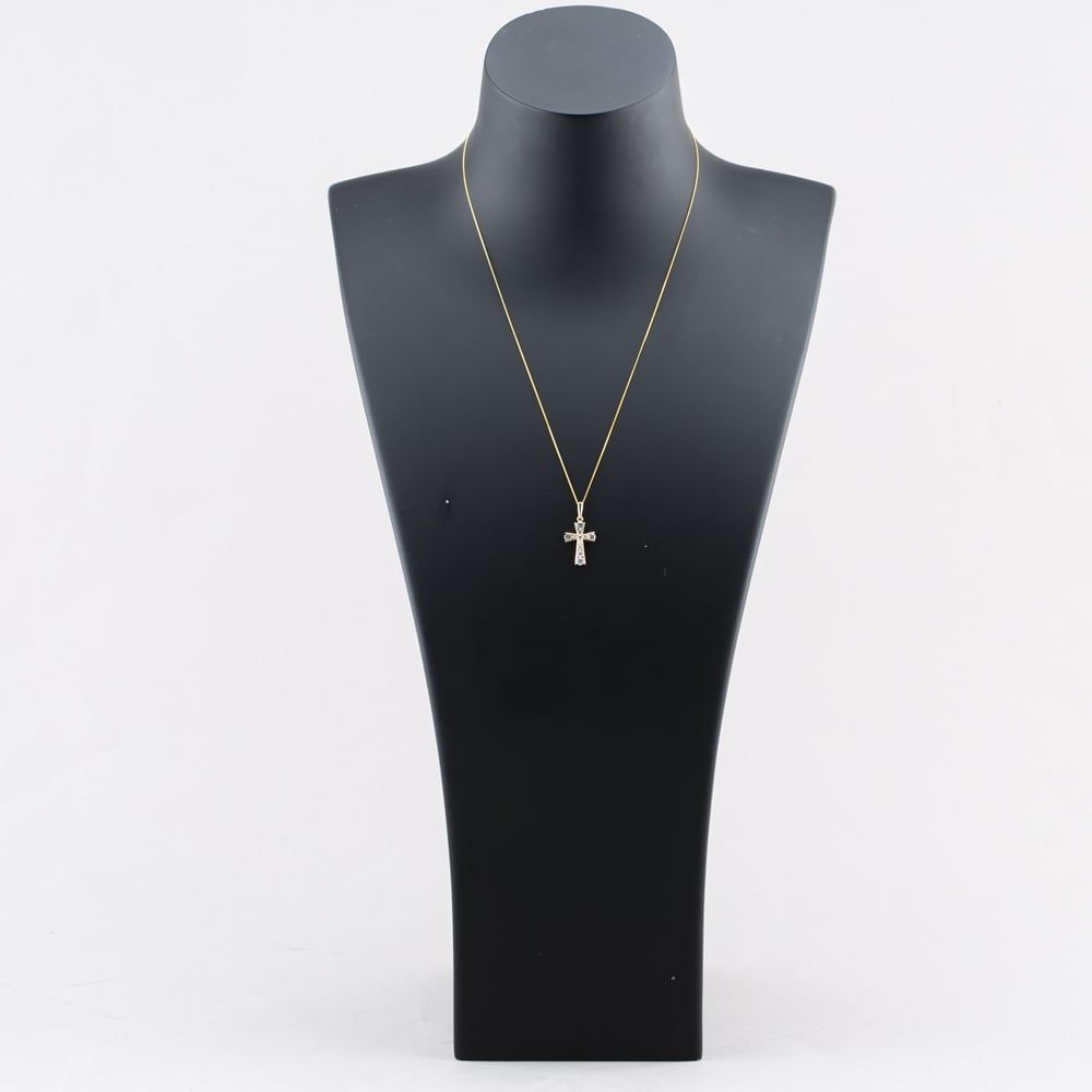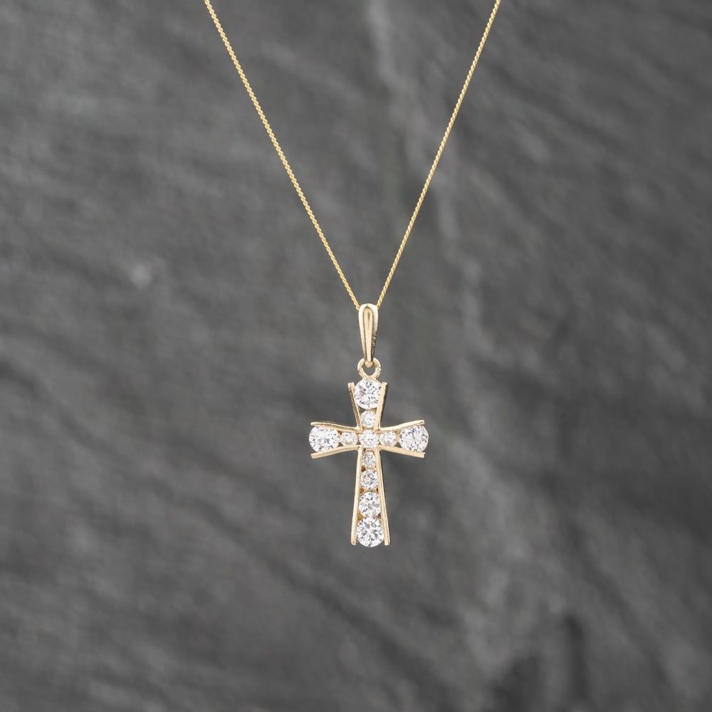 Second Hand Yellow Gold Cubic Zirconia Channel Set Cross Pendant & 18 Inch Curb Chain 41142837 Second Hand Yellow Gold Cubic Zirconia Channel Set Cross Pendant & 18 Inch Curb Chain 41142837