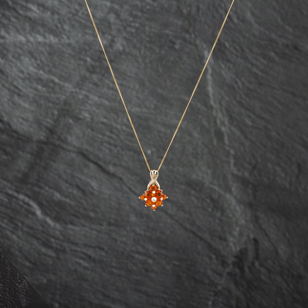 Yellow Gold Orange Garnet Cluster Gemstone Pendant & 18 Inch Curb Chain