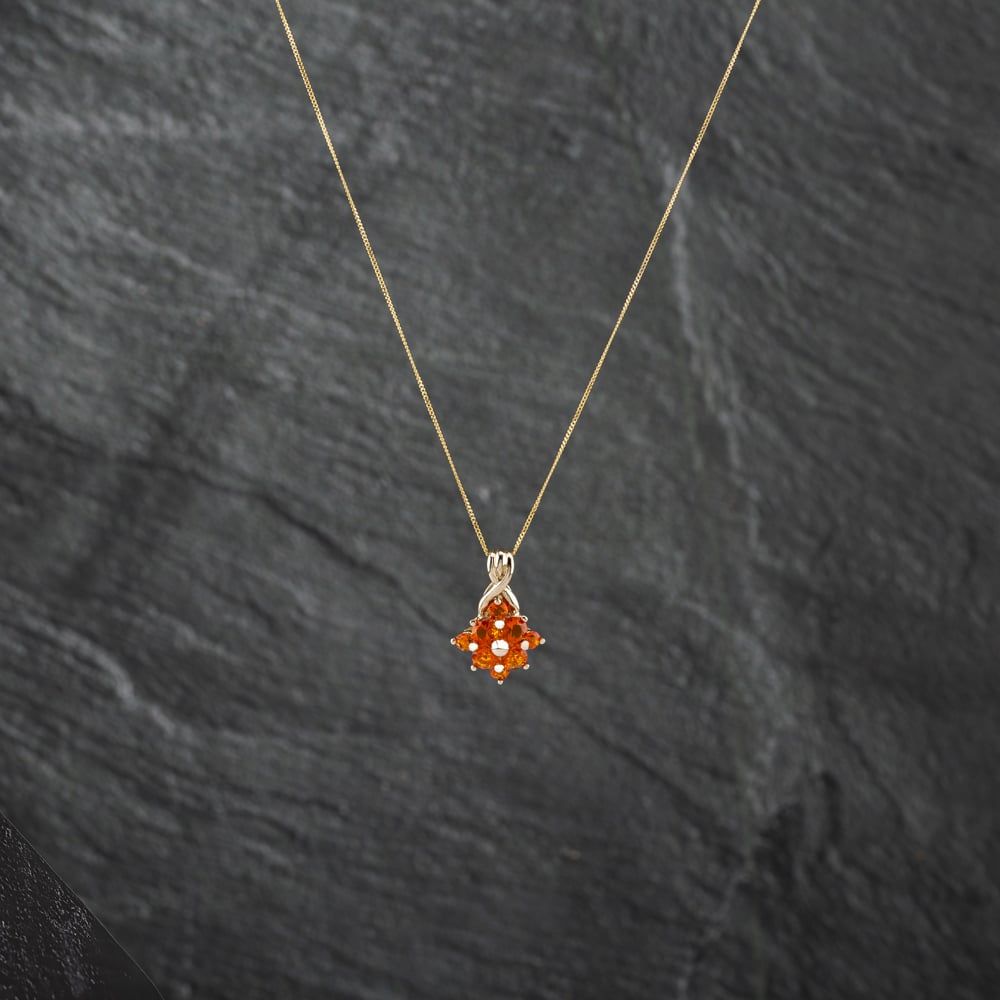 Second Hand Yellow Gold Orange Garnet Cluster Gemstone Pendant & 18 Inch Curb Chain 41142804 Second Hand Yellow Gold Orange Garnet Cluster Gemstone Pendant & 18 Inch Curb Chain 41142804