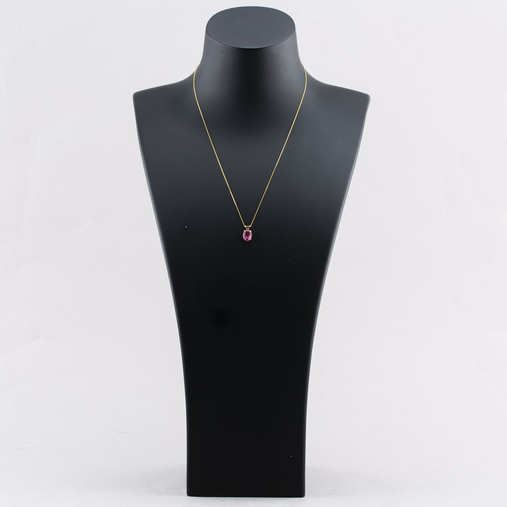 Second Hand Yellow Gold Pink Colour Treated Topaz Pendant & 18 Inch Curb Chain 41142731