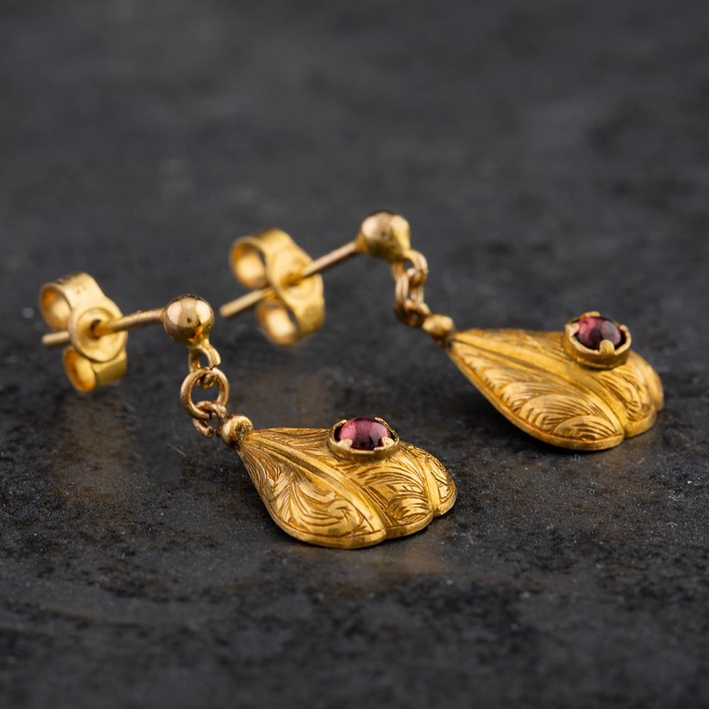 Batch 357 Yellow Gold Pink Tourmaline Dropper Earrings