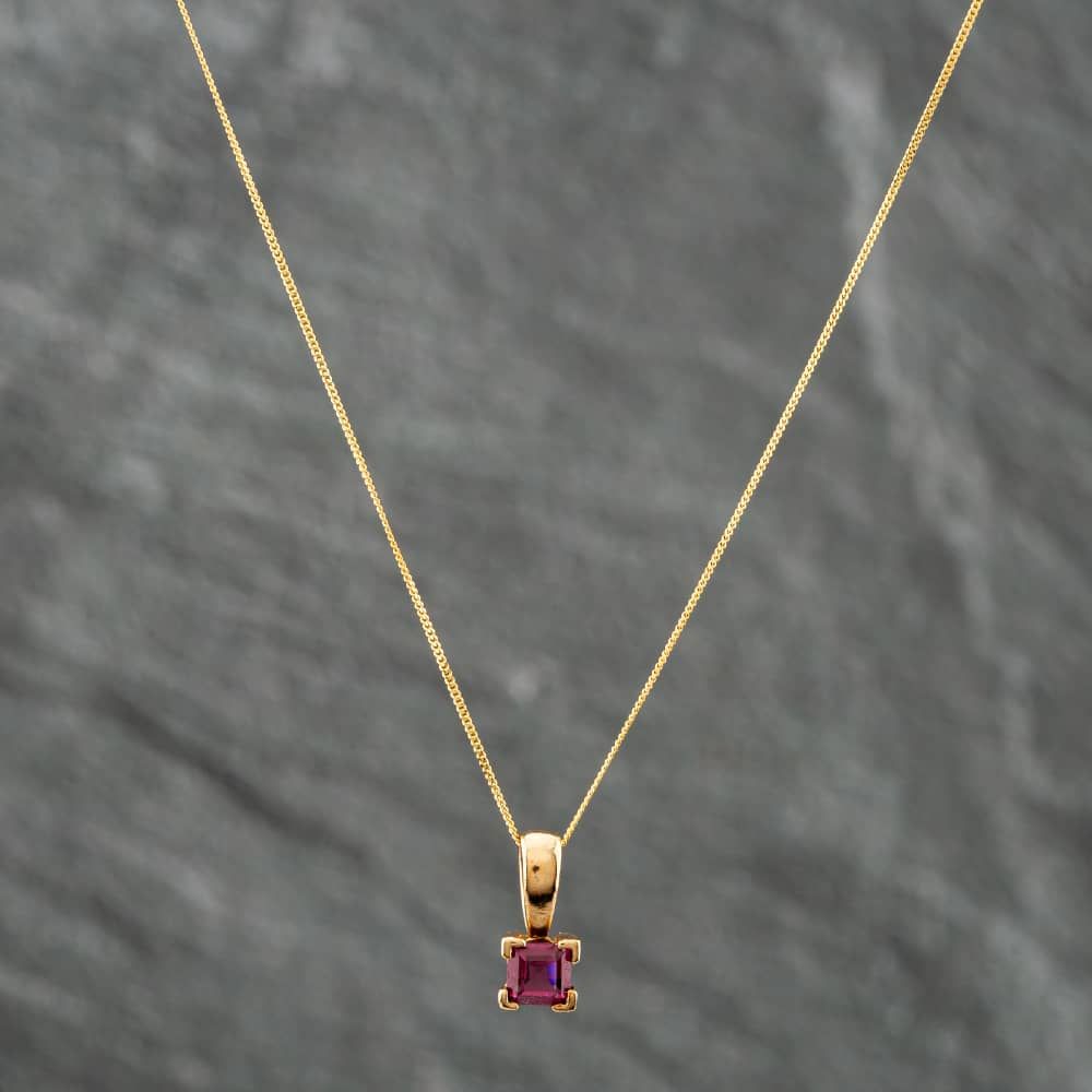 Yellow Gold Pink Tourmaline Pendant & 18 Inch Curb Chain