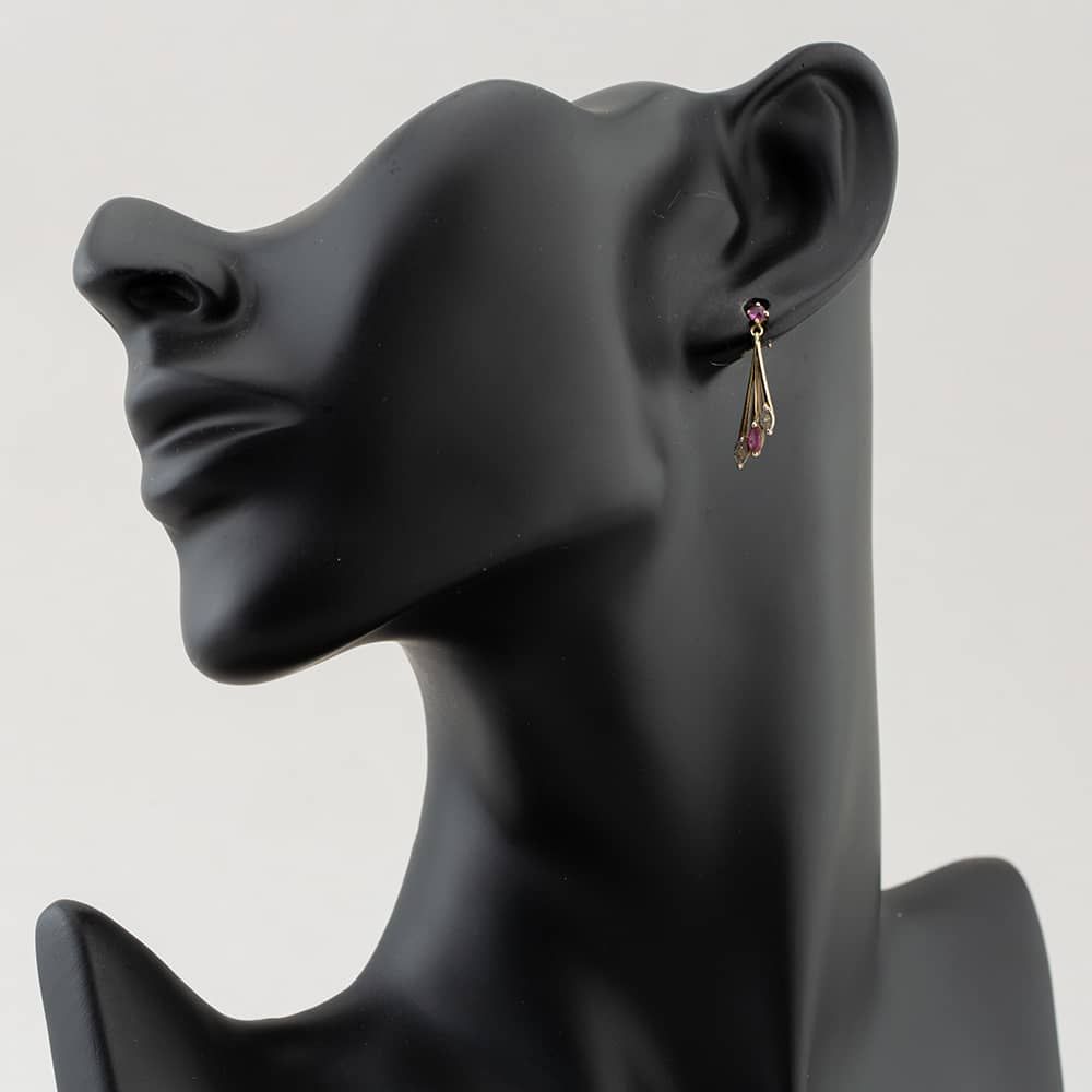 Yellow Gold Ruby & Single Cut Diamond Dropper Earrings