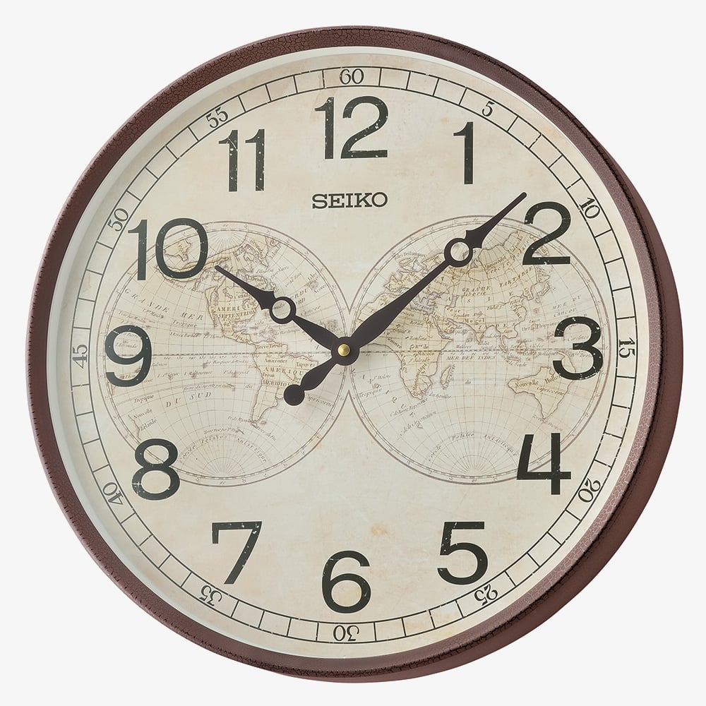 Seiko Clocks Seiko Brown World Map Dial Round Wall Clock QXA803B