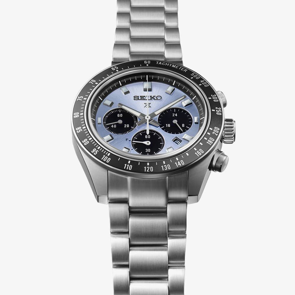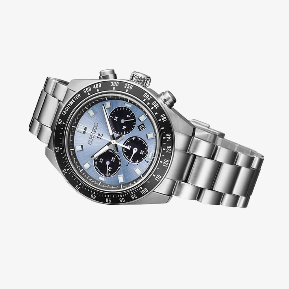 This solar-powered chronograph from the Seiko Prospex Speedtimer collection blends precision engineering with symbolic design. Featuring a glass-blue dial inspired by the crystal trophies awarded to elite athletes, it captures the spirit of high-level competition. Powered by the efficient V192 solar calibre, it offers reliable chronograph and tachymeter functions without the need for battery changes. A screw-down case back ensures durability, while the Speedtimer lineage reflects Seiko’s rich heritage in professional sports timekeeping.