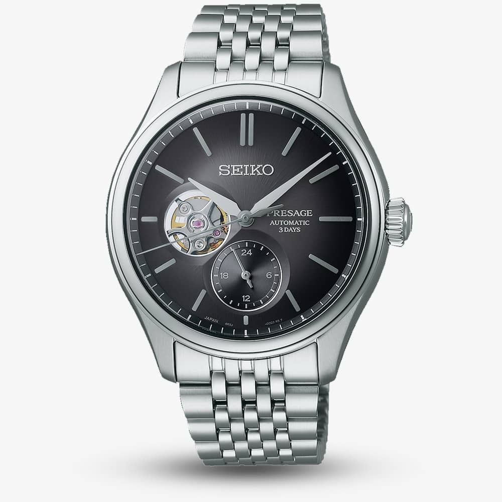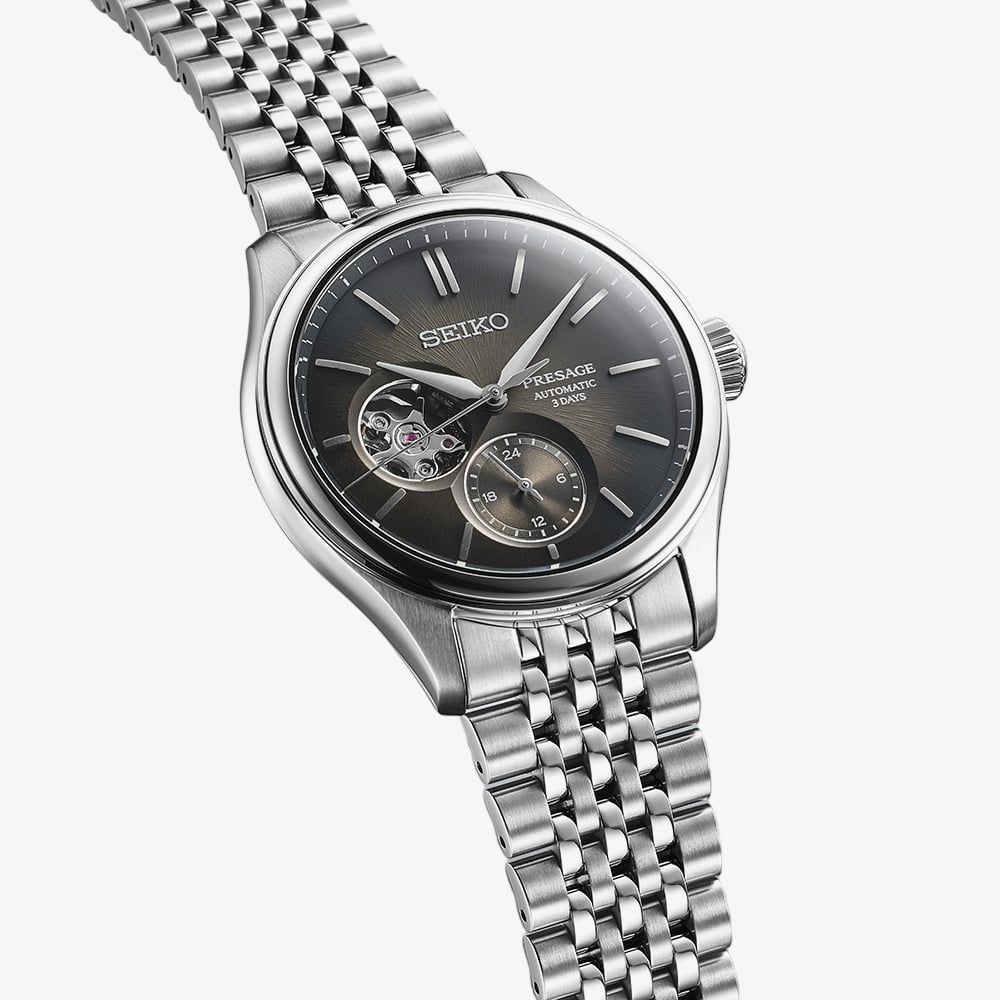 Named 'Sumi-iro,' meaning ‘ink black’ for its dial colour, this watch features a texture inspired by soft Japanese silk, a material with a rich history in Japan, used for home décor and clothing since ancient times. Beneath sapphire glass, the curved dial, along with its elegantly curved hands and indices, evokes a vintage aesthetic and is specifically designed to maximise light reflections.