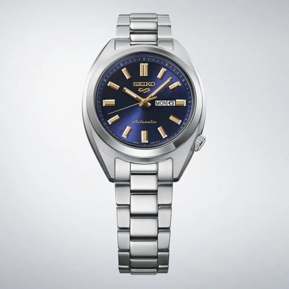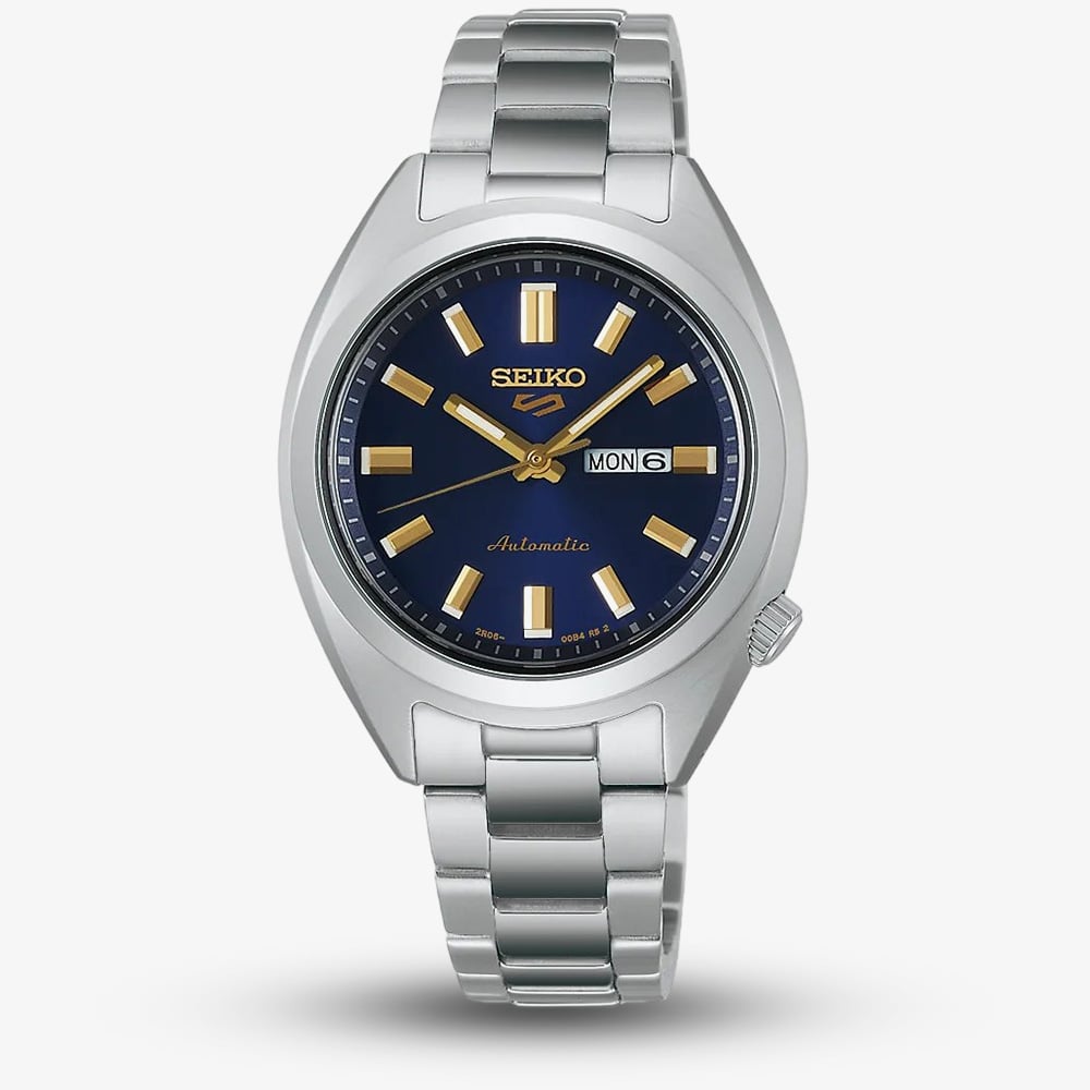 The Seiko 5 Sports Hebitama SNXS Denim Blue Dial Watch combines playful design with everyday versatility. Featuring the iconic Hebitama “helmet” case shape, cherished by Seiko enthusiasts, this model is reimagined in a more compact size for modern wear. Its denim blue dial is enriched with fine surface detailing, complemented by gold-tone hands and hour markers for enhanced legibility and timeless style. A perfect choice for Seiko 5 Sports fans, this watch blends heritage design with contemporary elegance.