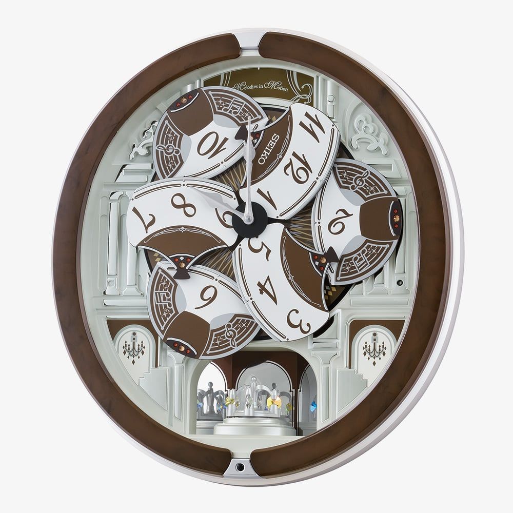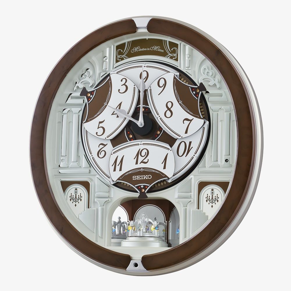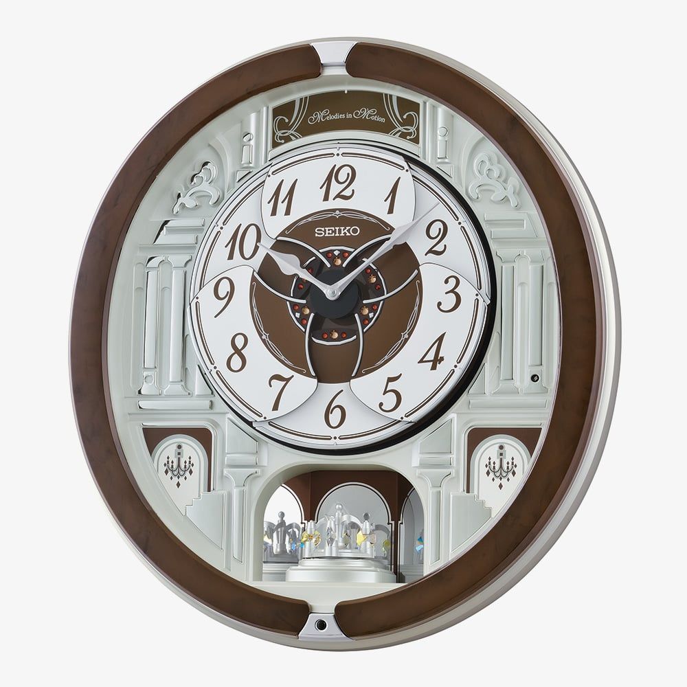 Seiko Clocks Seiko Melodies In Motion Brown Silver Wall Clock QXM615B