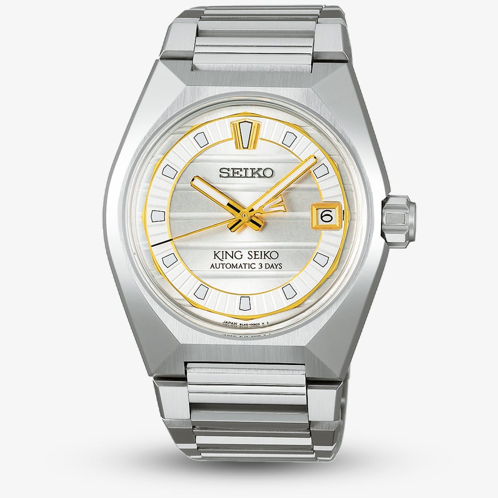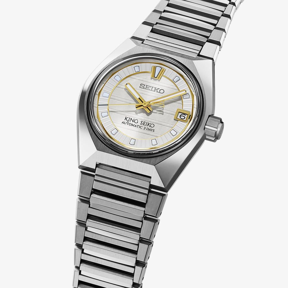 This watch captures the serene beauty of a Tokyo sunrise with refined elegance and vintage spirit. This timepiece brings together the heritage of the 1970s King Seiko Vanac series with the precision of modern watchmaking. At the heart of its design is a radiant silver sunray dial, subtly tinted with warm tones that evoke the soft glow of early morning light. Paired with gold-tone hands and markers, the dial exudes sophistication and charm while maintaining excellent legibility.