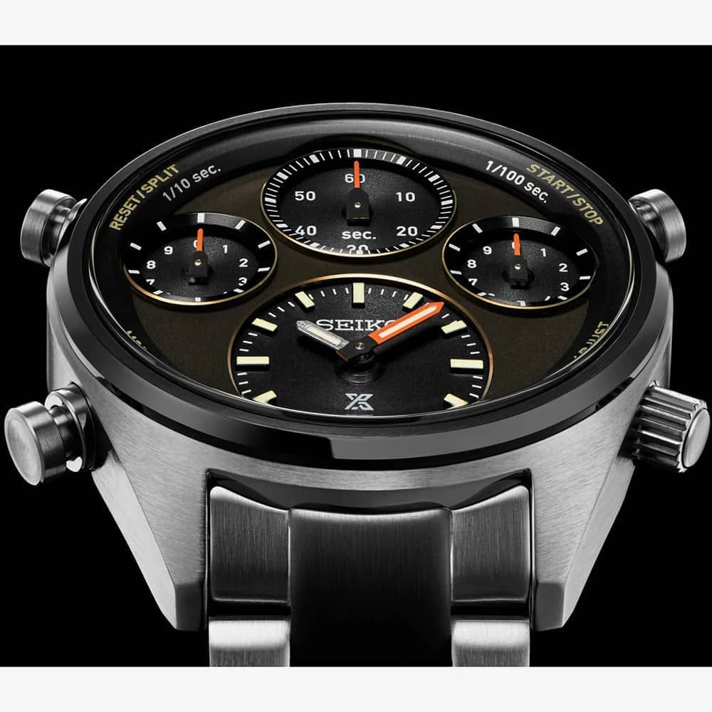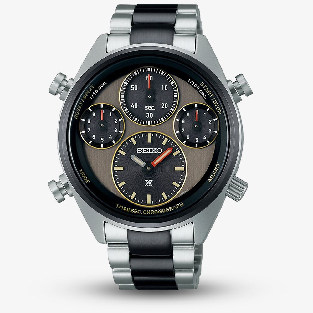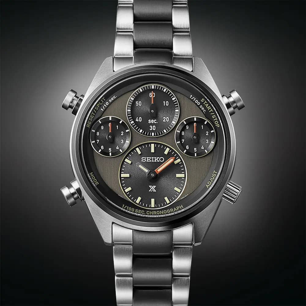 The Speedtimer Prospex watch collection embodies Seiko's rich heritage in professional timekeeping and draws inspiration from its history of innovation. This exclusive limited-edition design showcases a newly developed solar chronograph movement, crafted in-house, with a precise stopwatch capable of measuring time to the nearest 1/100th of a second. Limited to only 4,000 pieces worldwide, this timepiece pays homage to the 40th anniversary of Seiko's groundbreaking 7A28, the world's first analogue quartz chronograph introduced in 1983. It faithfully recreates the iconic black bezel and khaki-grey dial colour of the original 1/100th second chronograph from 1992, complemented by a bracelet reminiscent of the original design, featuring a distinctive black strip running through its centre.