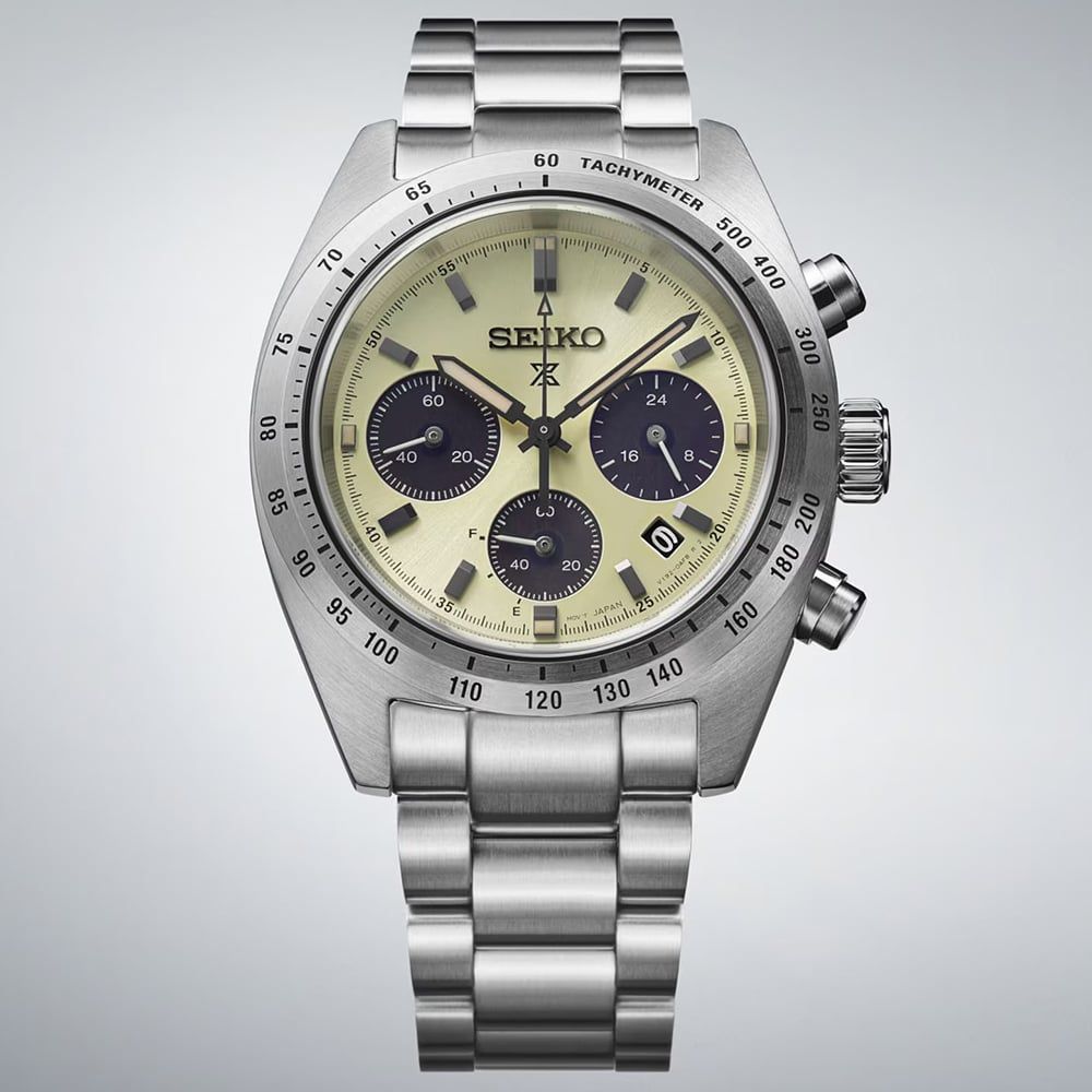 Created in tribute to Europe’s passion for vintage motoring, the Seiko Prospex Speedtimer SSC959P1 is a limited edition of just 2,700 pieces, available exclusively in Europe. Inspired by classic sports cars, its cream sunray dial sits beneath curved sapphire crystal glass, reflecting the refined sheen of polished coachwork. The contrasting black sub-dials capture the beloved ‘Panda’ design, while the additional light brown punched leather strap evokes the luxurious interiors of heritage automobiles.