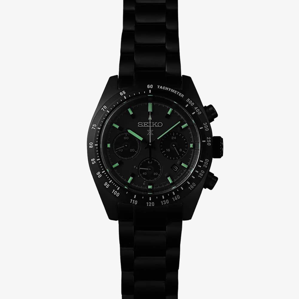Introducing the latest evolution of Seiko’s iconic Black Series: the Prospex Black Series ‘Night Speedtimer.’ Inspired by the intensity and precision of night missions, this timepiece captures the spirit of nocturnal exploration, echoing the sharp, focused view through a night scope. Its all-black design is both stealthy and bold, featuring a black dial and matching bracelet strap for a unified, tactical aesthetic. Equipped with a chronograph and tachymeter function, it offers reliable performance and split-second timing accuracy. Powered by a solar-powered movement, it combines cutting-edge efficiency with convenience. Lumibrite Pro hands and indexes ensure superior legibility in the dark, making this watch a trusted companion for those who thrive after dusk.