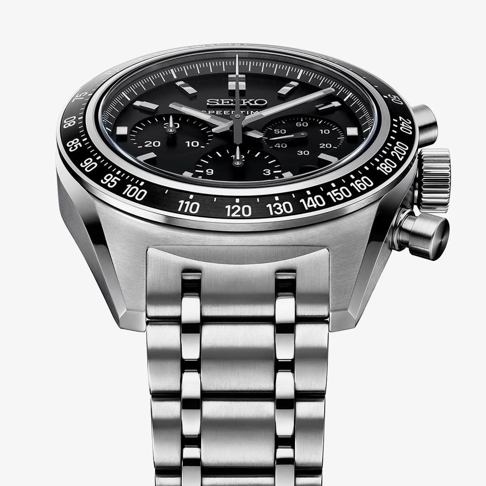 A tribute to Seiko’s 1969 breakthrough, this Speedtimer features a 42mm case, tachymeter bezel, and highly legible sub-dials beneath dual-curved sapphire glass. Powered by the in-house 8R48 calibre with vertical clutch, column wheel, and 3-pointed hammer, it offers precise, durable chronograph performance, true to the Prospex spirit of professional-grade reliability.