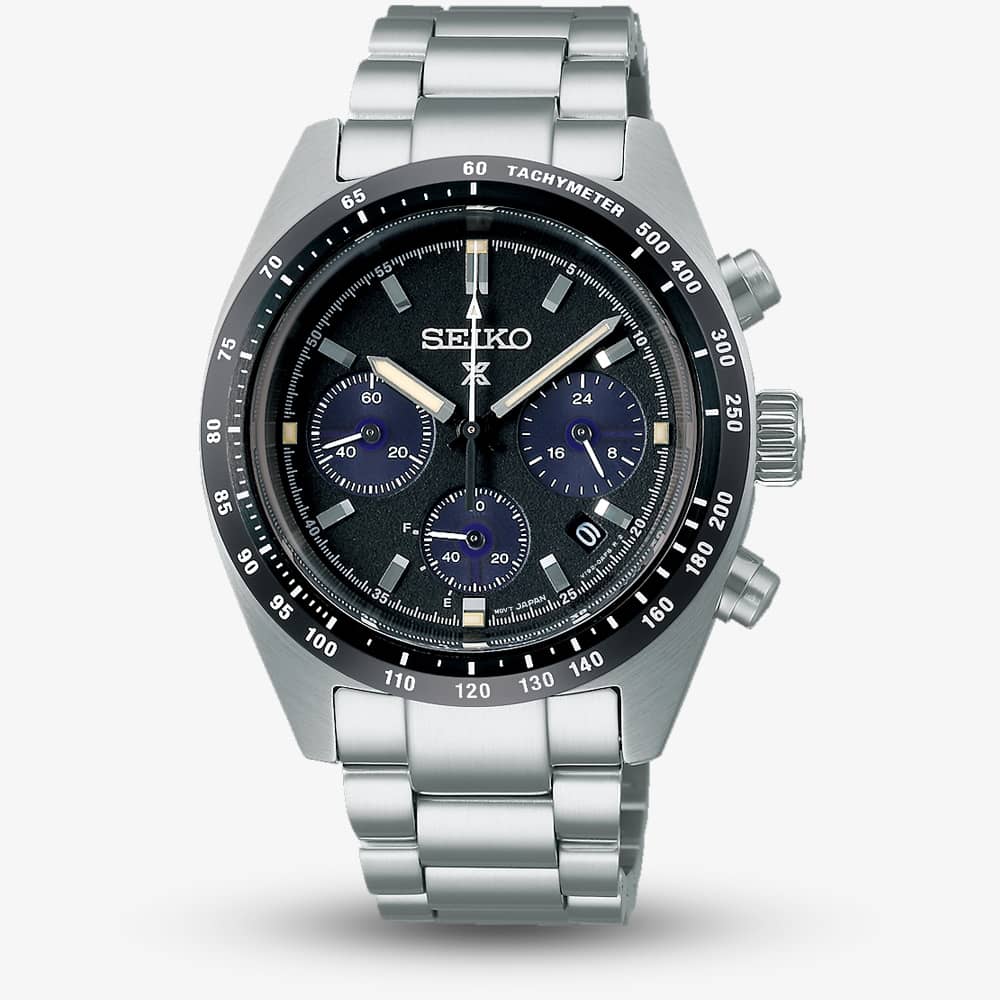 Inspired by the sleek contours of the groundbreaking 1969 automatic chronograph, this modern reinterpretation blends heritage design with contemporary technology. The solar powered movement offers convenient, eco-friendly performance with no need for battery changes. The Speedtimer features a black dial equipped with LumiBrite-coated hands and markers, chronograph sub-dials, and a date display, all protected by a curved sapphire crystal with anti-reflective coating on the inner surface.