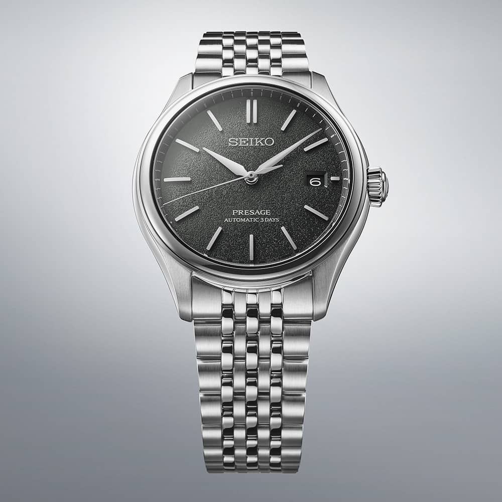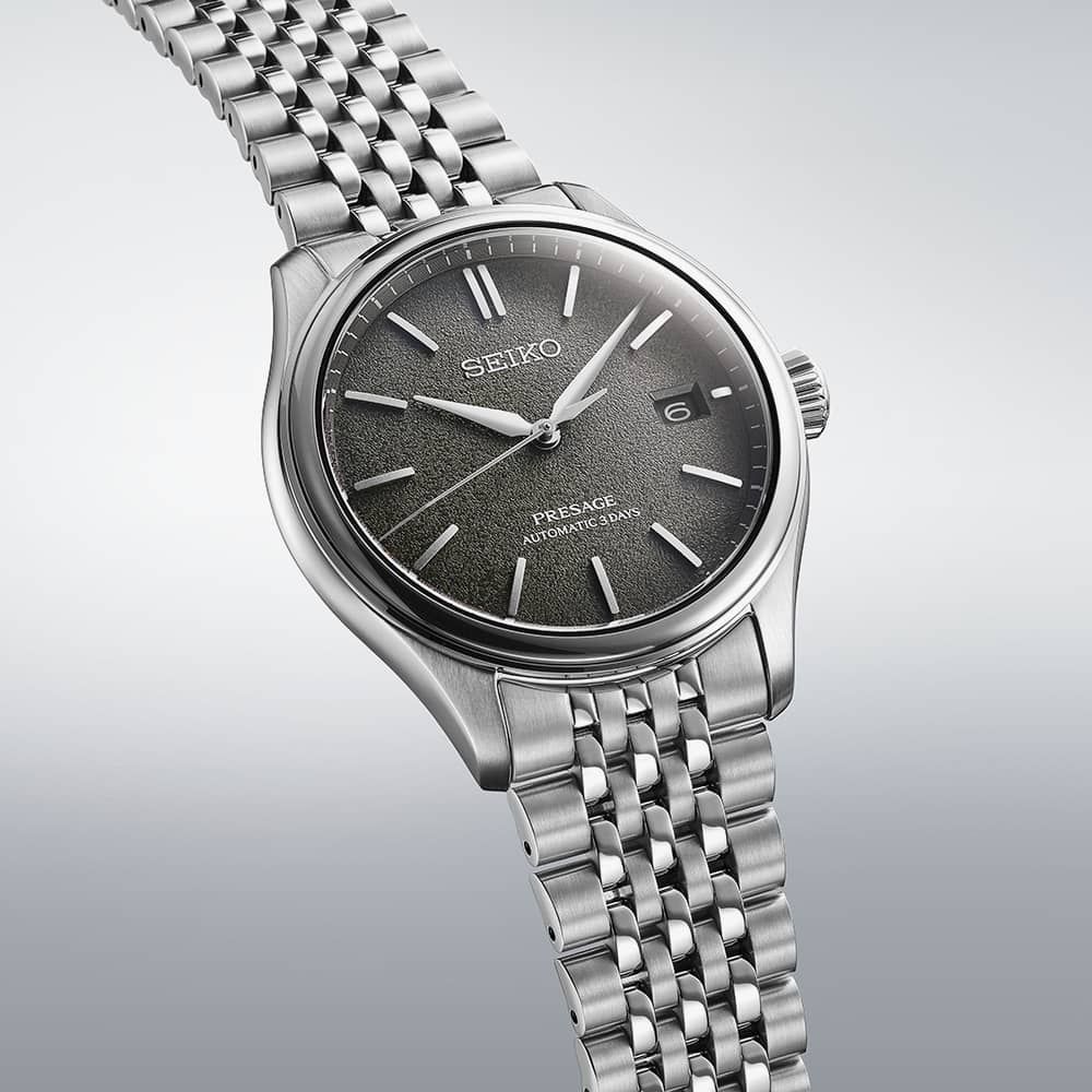 Named ‘Sensaicha,’ meaning grey-green, this watch features a dial texture inspired by soft Japanese silk, a material deeply ingrained in Japan’s history, traditionally used in home décor and clothing. Under sapphire glass, the curved dial with curved hands and indices evokes a vintage style, designed to enhance light reflections.