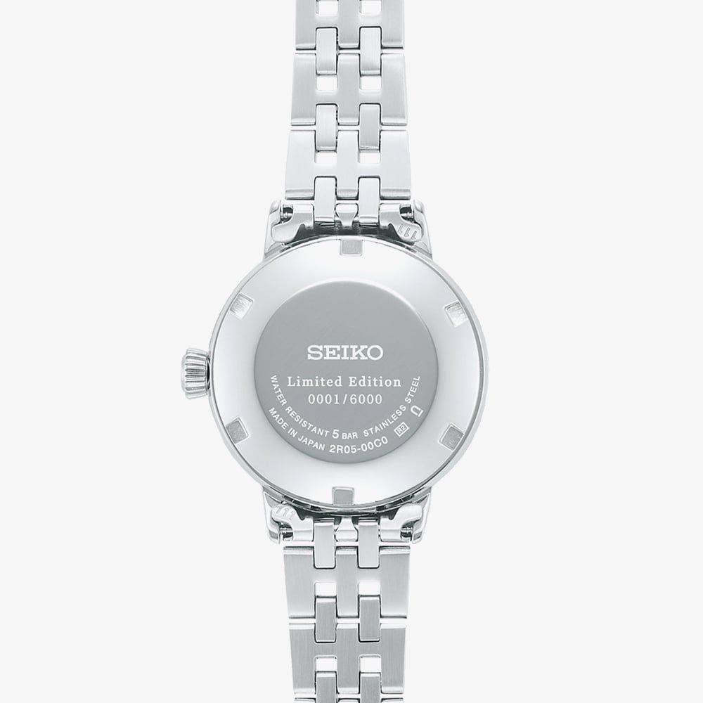 The Seiko Presage Cocktail Time collection takes inspiration from Japanese cocktail culture, particularly drinks from Tokyo's Star Bar in Ginza. This smaller Seiko Presage Cocktail Time model features a black-to-grey gradient dial, inspired by ice in a cocktail glass, with gold hands and indices reflecting Tokyo’s city lights. The multi-sided cut glass and mirror-finished bracelet evoke the sparkle of the Tokyo night sky.