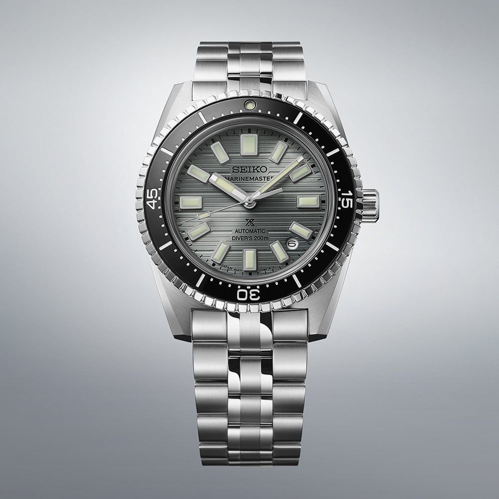 The Prospex Green-water ‘Marinemaster’ 1965 Diver's Re-interpretation pays homage to Seiko's first Diver's watch from 1965, renowned for its durability, including use by the Japanese Antarctic Research Expedition. This modern version features a case design inspired by the original, with a marine sports style. It has an Aquatic green dial with a textured horizontal pattern under box sapphire crystal glass, rectangular Lumibrite-coated indices, and mirror-finished lugs. The slim 12.3mm case houses the new in-house 6L37 mechanical calibre, offering +15 to -10 seconds per day accuracy and a 45-hour power reserve. As part of the Seiko Prospex line, this watch combines professional-grade specifications with elegant design.