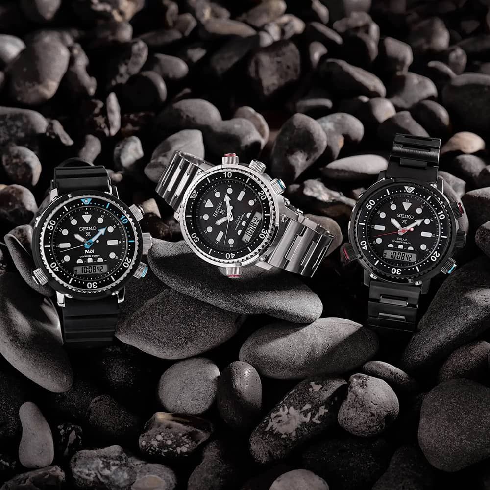 This diver's watch is a modern reinterpretation of Seiko's groundbreaking 1982 "Hybrid diver's" model, known as the 'Arnie' for its association with the actor in the film 'Commando' and nicknamed 'Tuna' by Seiko fans due to its bold, tuna tin-like shape. It celebrates the 40th anniversary of the world's first hybrid diver's watch with an alarm chronograph, which proved its reliability in extreme conditions like the Japanese Antarctic Research Expedition in 1984 and the Joint Mount Everest Challenge in 1988.