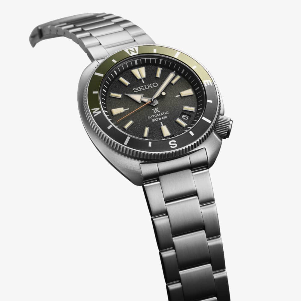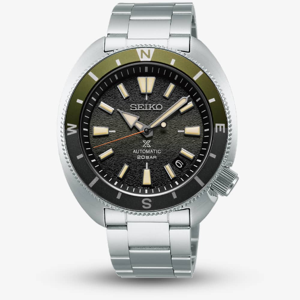 This land-based watch is built in the classic 'tortoise' design – as named by fans for its comfortable wrist shape and land inspiration. In addition to the stainless-steel bracelet, this timepiece also comes with a grey nylon strap. Powered by a 4R35 automatic movement with a 41-hour power reserve and -35/+45 seconds per day accuracy, it has a water resistance of 20bar.