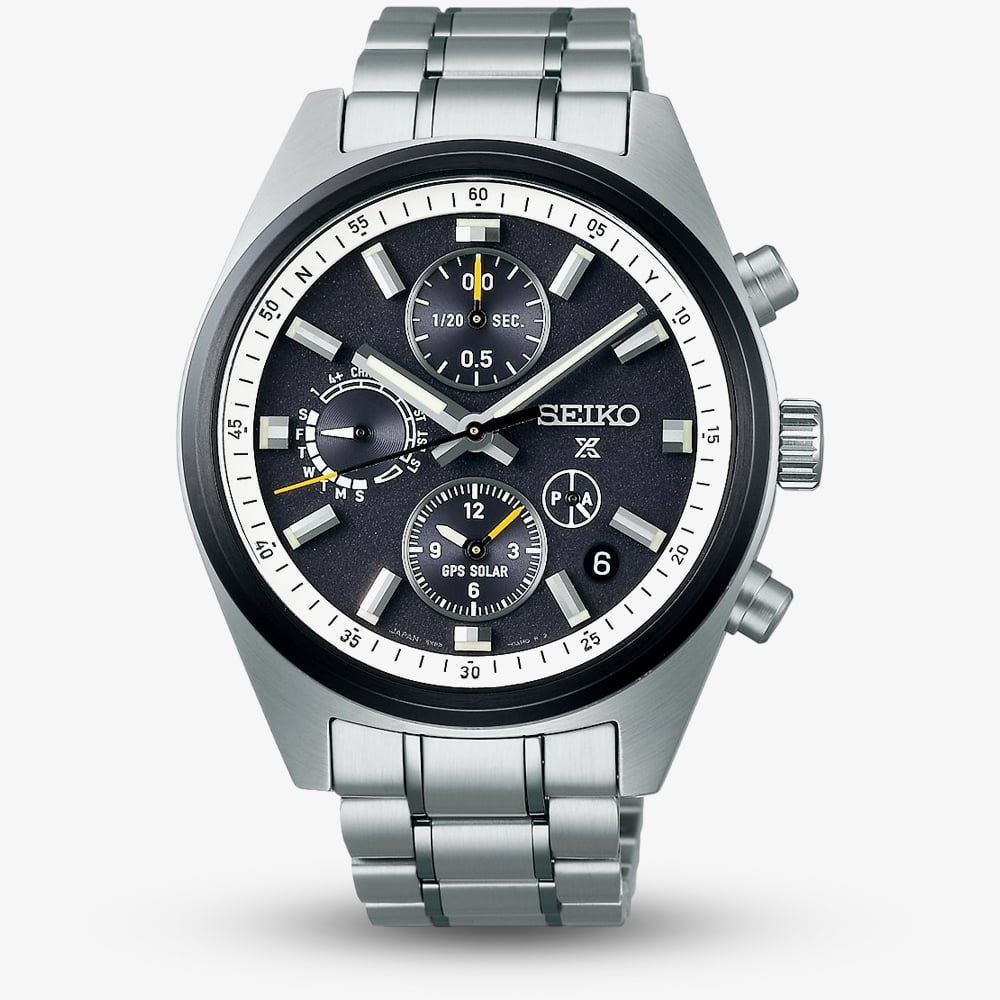 Introducing the first GPS Solar Chronograph in the Prospex collection, Seiko’s most advanced chronograph yet. Inspired by the 1972 "Panda" design, it combines classic styling with bold orange accents. Under dual-curved sapphire crystal, the black dial features dual-time display, high-speed time zone adjustment, and a time transfer function. A chronograph scale on the inner bezel and UTC markings enhance readability and precision. Powered by Seiko’s 5X83 Solar GPS calibre, it measures elapsed time to 1/20th of a second, offers ±15 seconds/month accuracy, and has a six-month power reserve. Rechargeable by any light source, it’s built for convenience. Prospex watches are crafted for durability, reliability, and performance, designed to meet the needs of adventurers and sports enthusiasts alike.