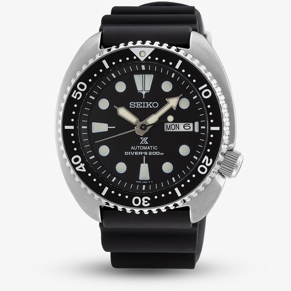 Seiko fans have named this watch the 'turtle' due to its turtle-like silhouette and comfortable curved design. Just like sea turtles are symbols of good fortune to divers, this diver's watch is beloved by diving enthusiasts. Seiko Prospex watches are designed for sports and adventure lovers, whether in water, air, or on land. Since launching Japan's first diver's watch in 1965. This watch uses a 4R36 calibre automatic movement with manual winding and features Lumibrite hands and hour markers for enhanced visibility in low light conditions.