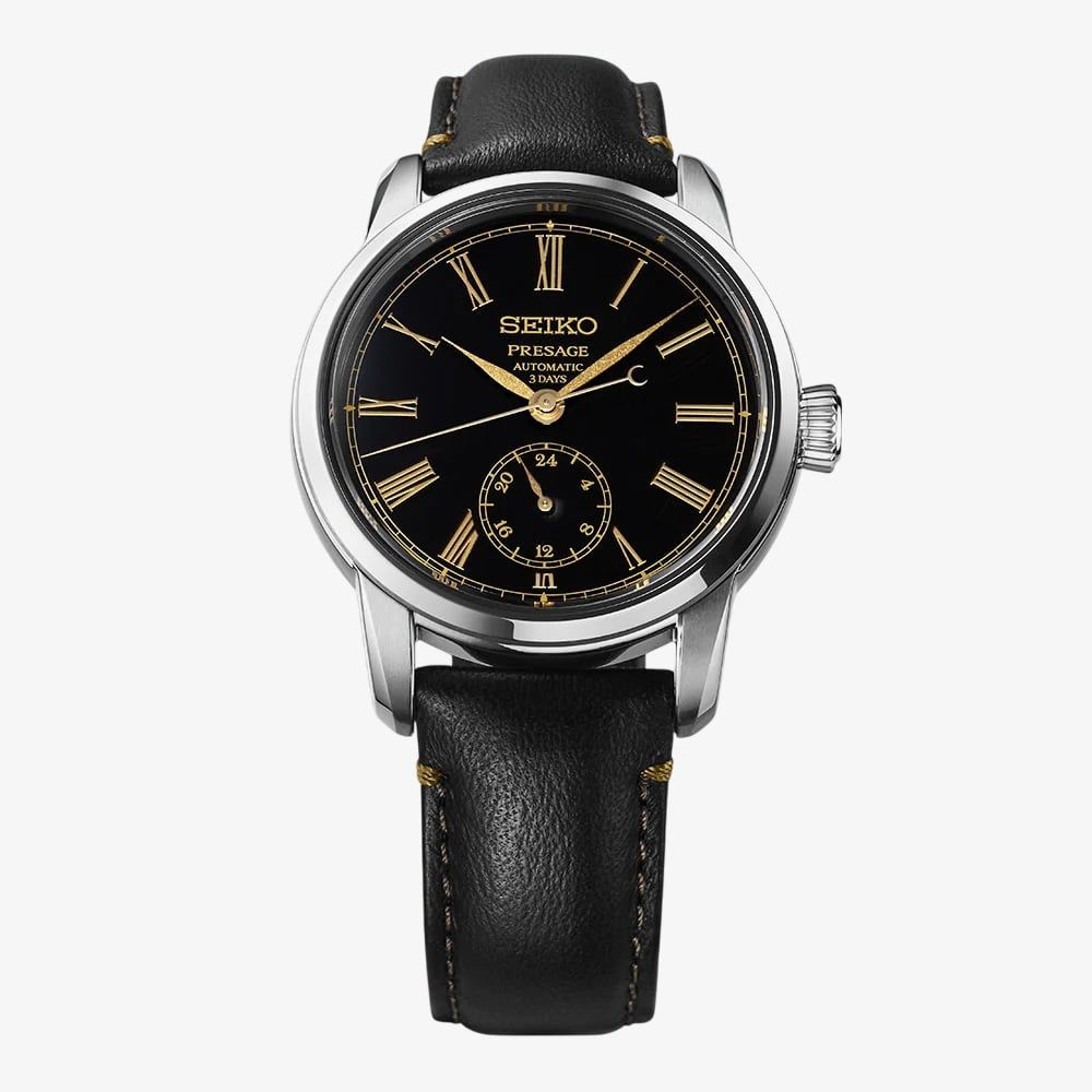 A timeless unisex timepiece that embodies elegance, craftsmanship, and cultural heritage. At the heart of this watch is a deep, lustrous Urushi lacquer dial, hand-finished using a centuries-old Japanese technique. The rich jet-black dial offers a mesmerising depth and a flawless sheen, providing the perfect backdrop for the refined gold-tone hands and hour markers, which stand out with understated luxury.