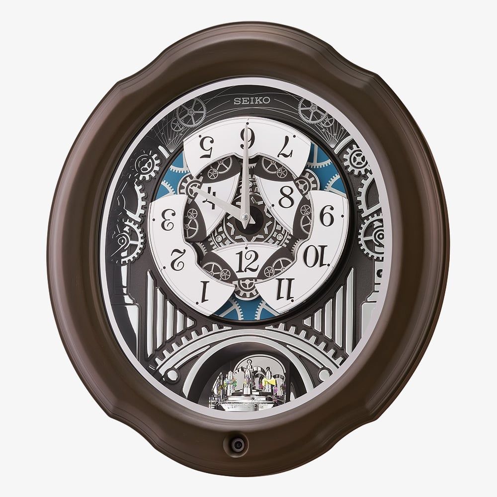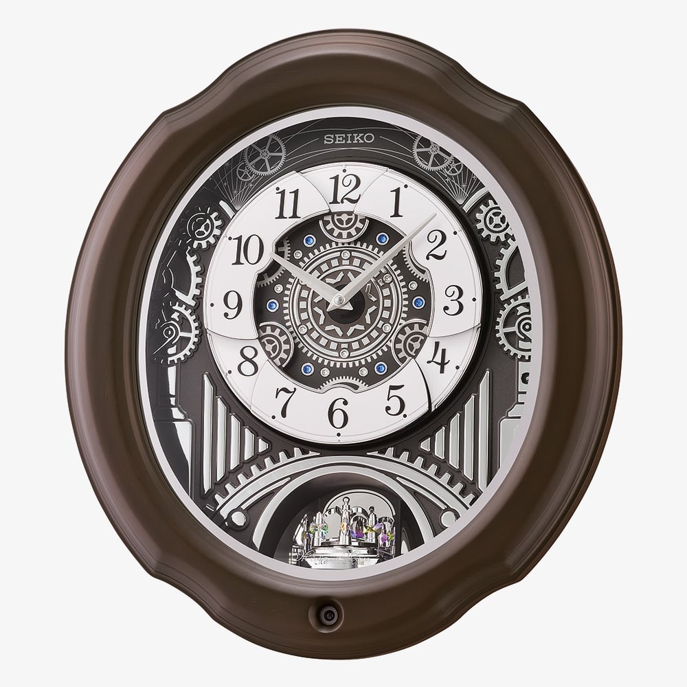 Seiko Clocks Seiko Wooden Melodies In Motion Skeleton Dial Wall Clock QXM609N
