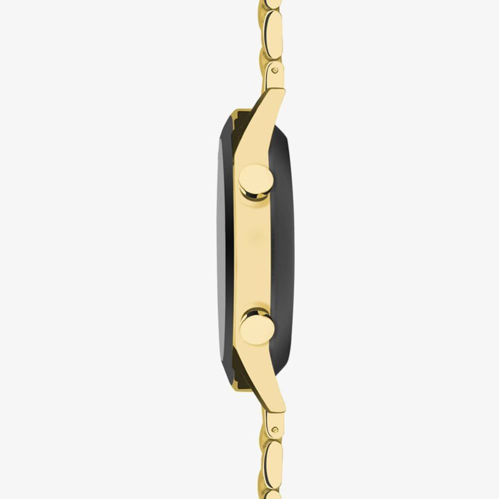 • Presented on a yellow gold plated stainless steel bracelet with push button deployment clasp.